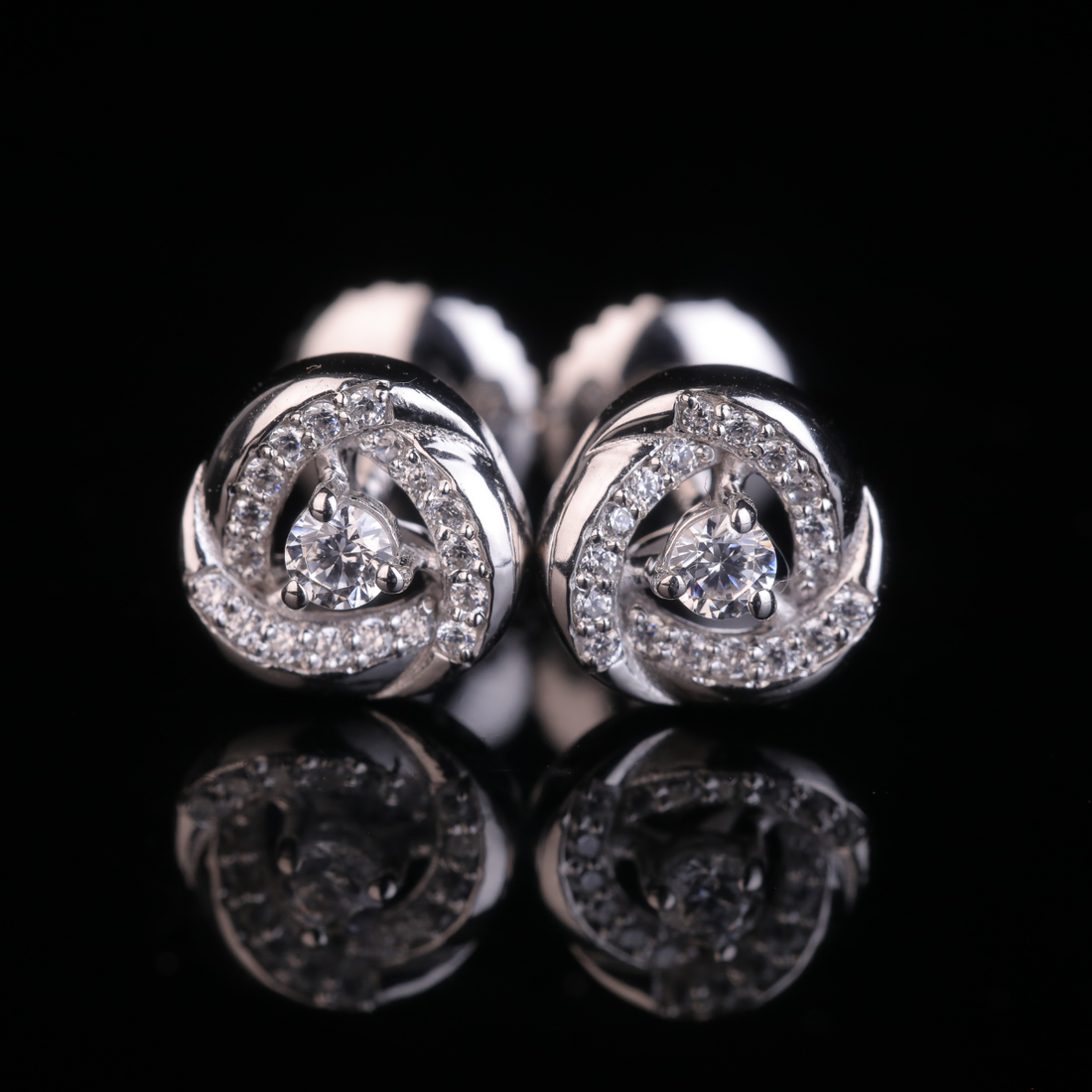 Round Diamond Swirl Stud Earrings | 18K, 14K, 10K Gold & Silver