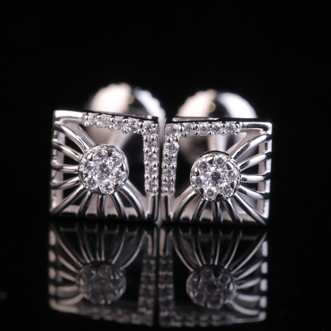 Square Diamond Stud Earrings | Minimal Gold & Silver Diamond Studs