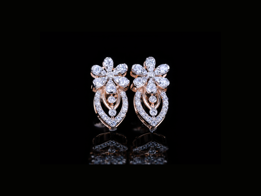 Luxury Diamond Floral Drop Stud Earrings | 18K, 14K, 10K Gold & Silver