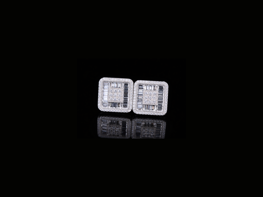 Square Baguette Diamond Stud Earrings | Luxury Gold & Silver Diamond Studs