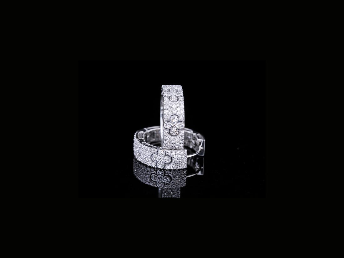 Luxury Diamond Floral Stud Earrings | 18K, 14K, 10K Gold & Silver