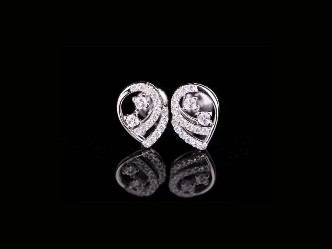 Swirl Heart Diamond Stud Earrings | 18K, 14K, 10K Gold & Silver