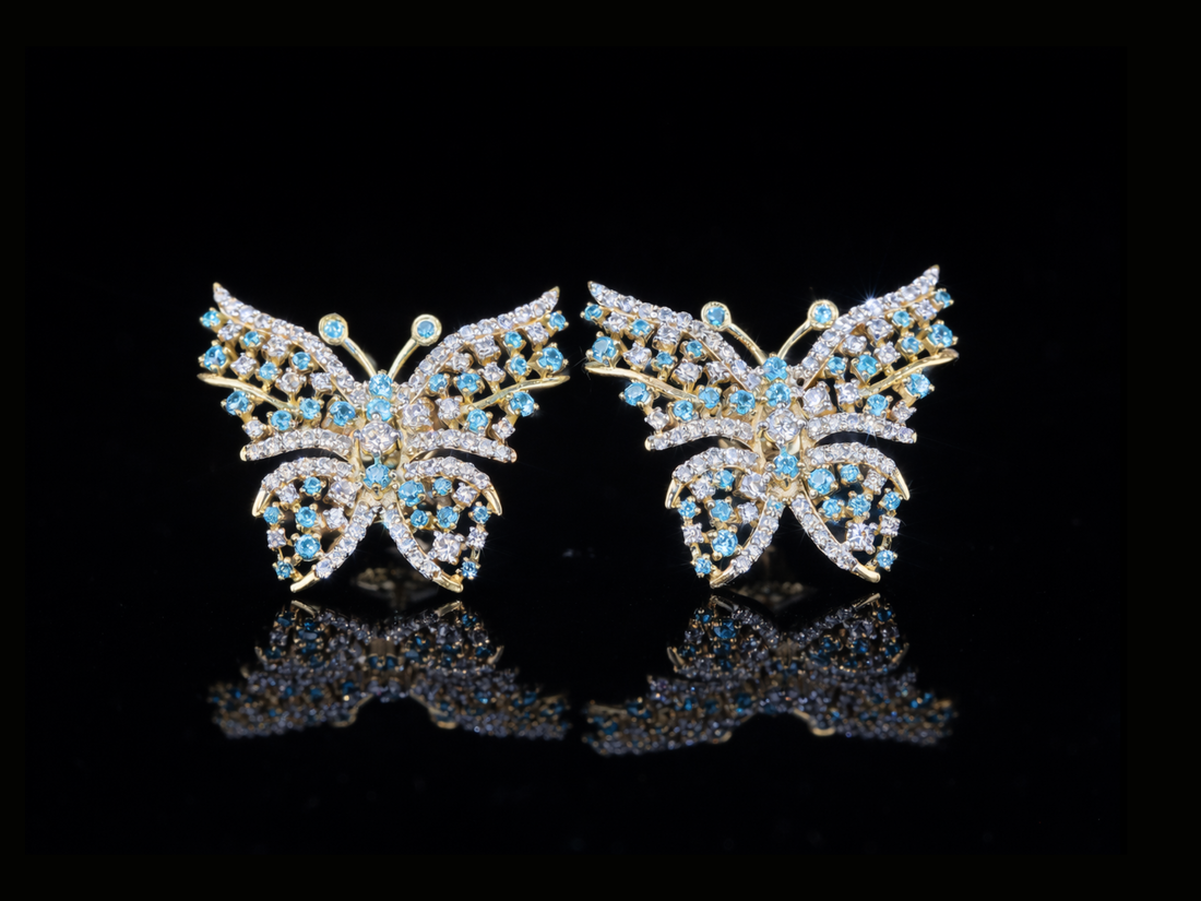Luxury Diamond Butterfly Earrings with Blue Gemstones | 18K, 14K, 10K Gold & Silver
