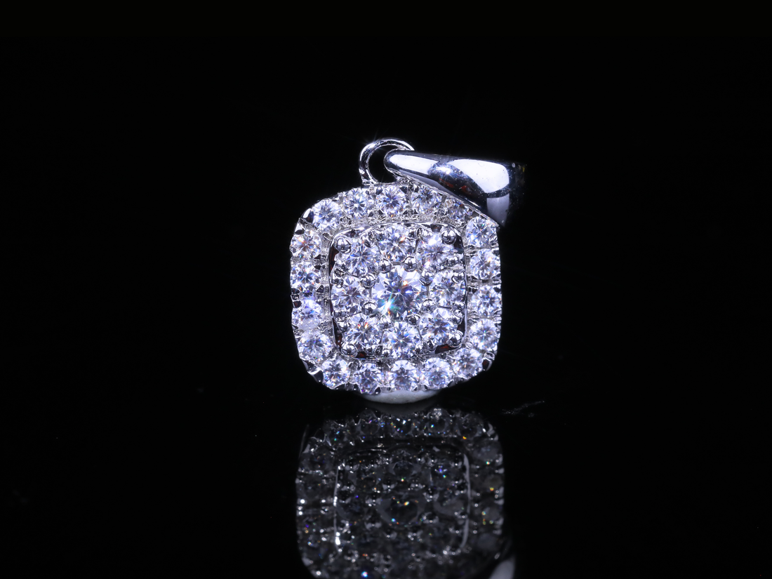 Square Halo Diamond Pendant | 18K, 14K, 10K Gold & Silver