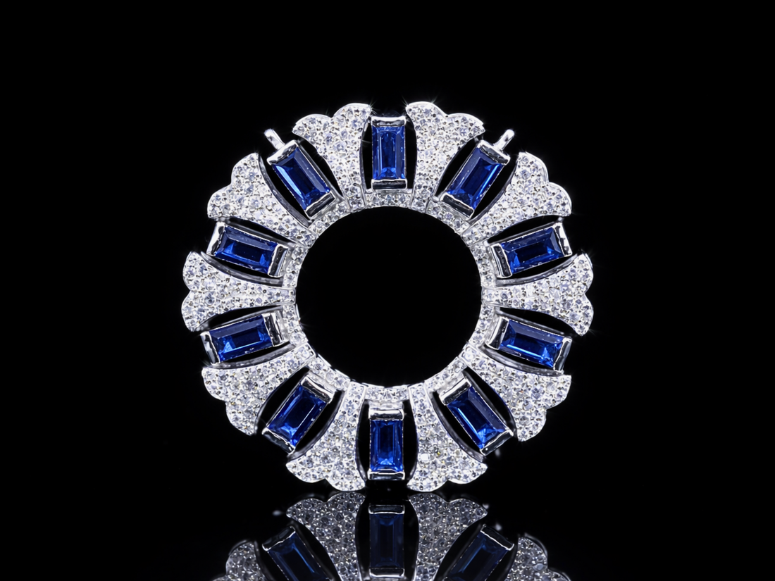 Make a bold statement with our Luxury Blue Sapphire & Diamond Circle Pendant, a refined...