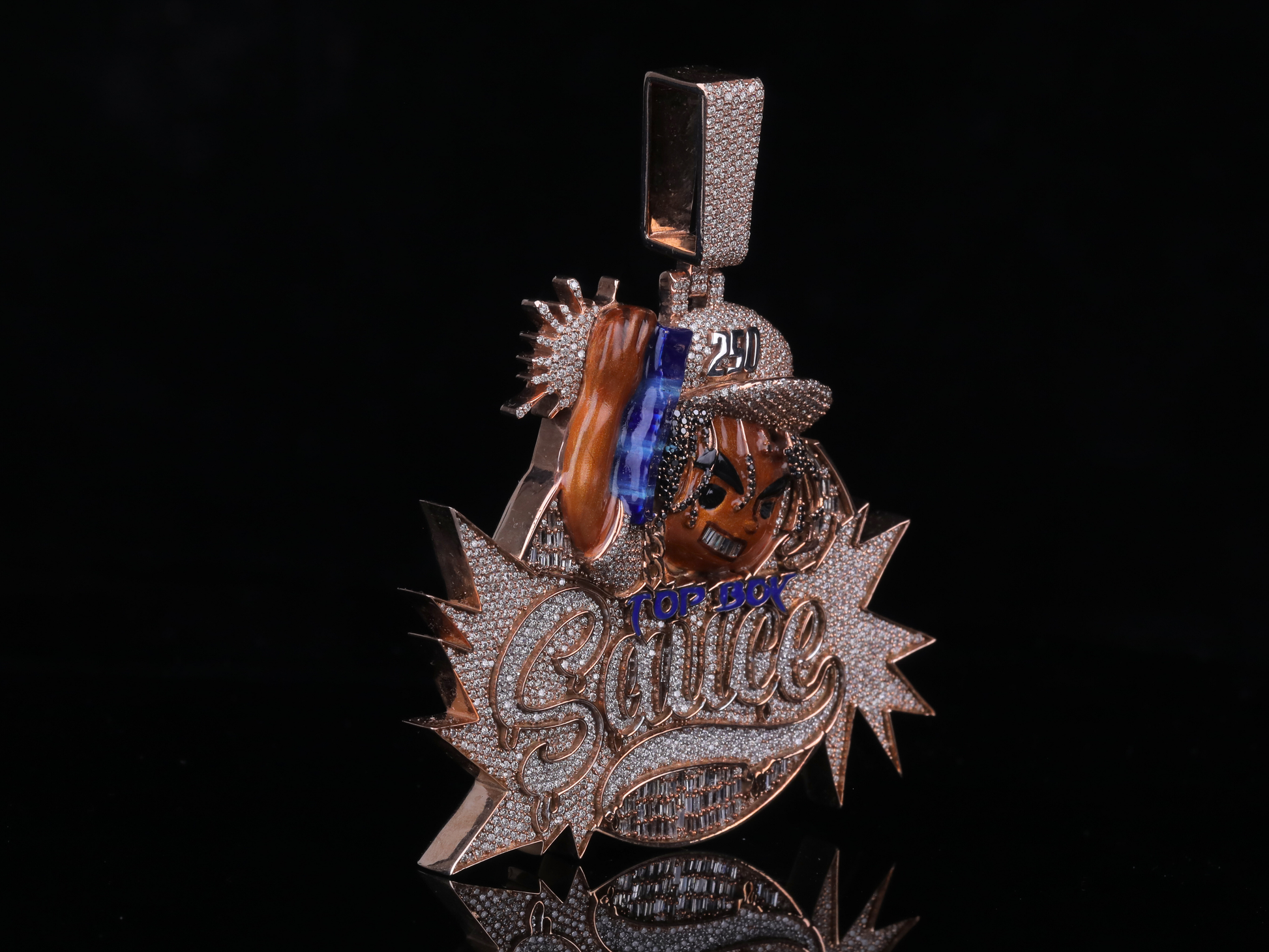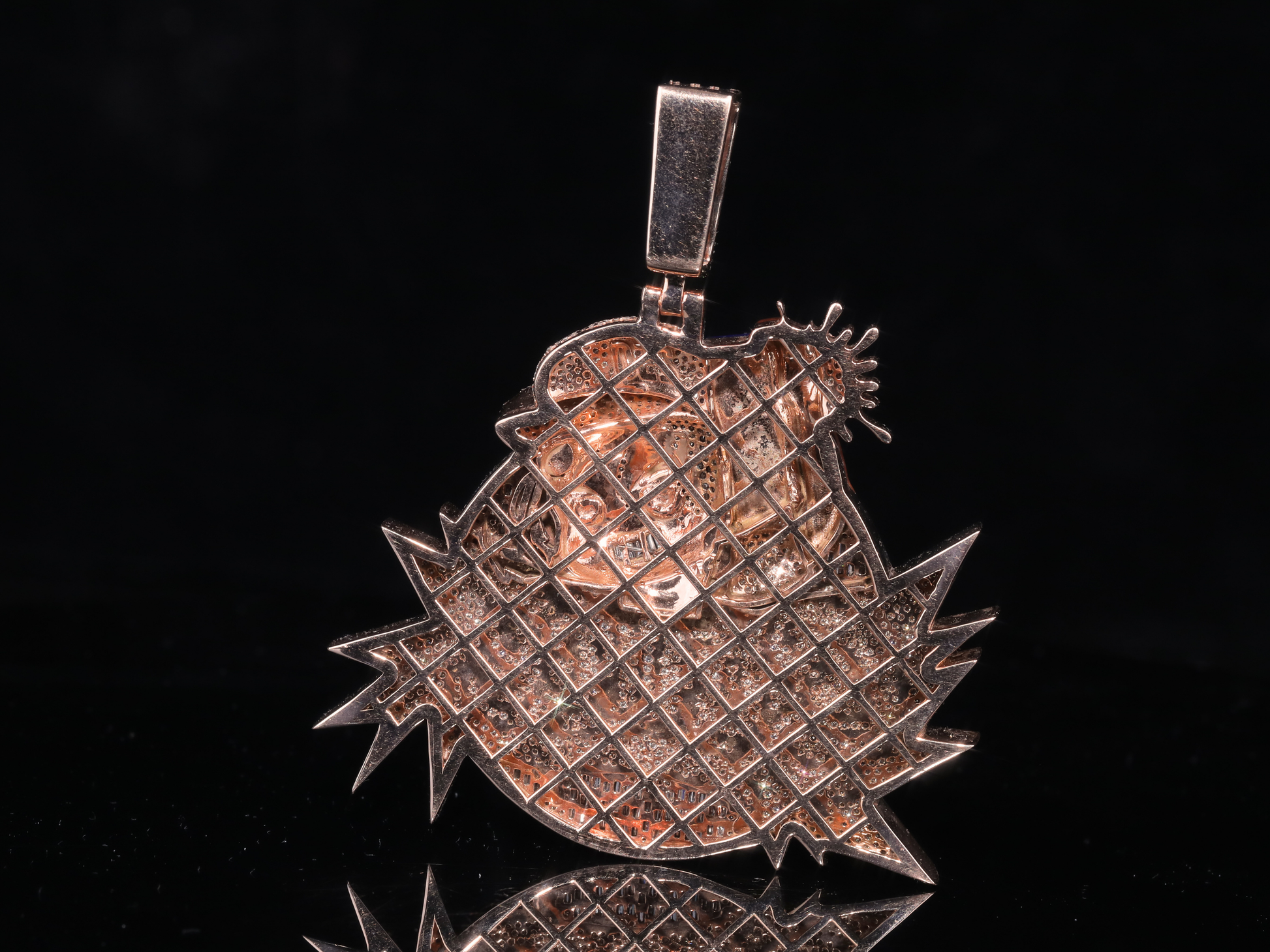 Crafted with precision and available in 18KT, 14KT, 10KT gold or 925 sterling silver, this pendant suits both premium collectors and everyday hip-hop jewelry lovers. The oversized diamond-studded bail fits most chains, making it perfect for layering or solo wear.