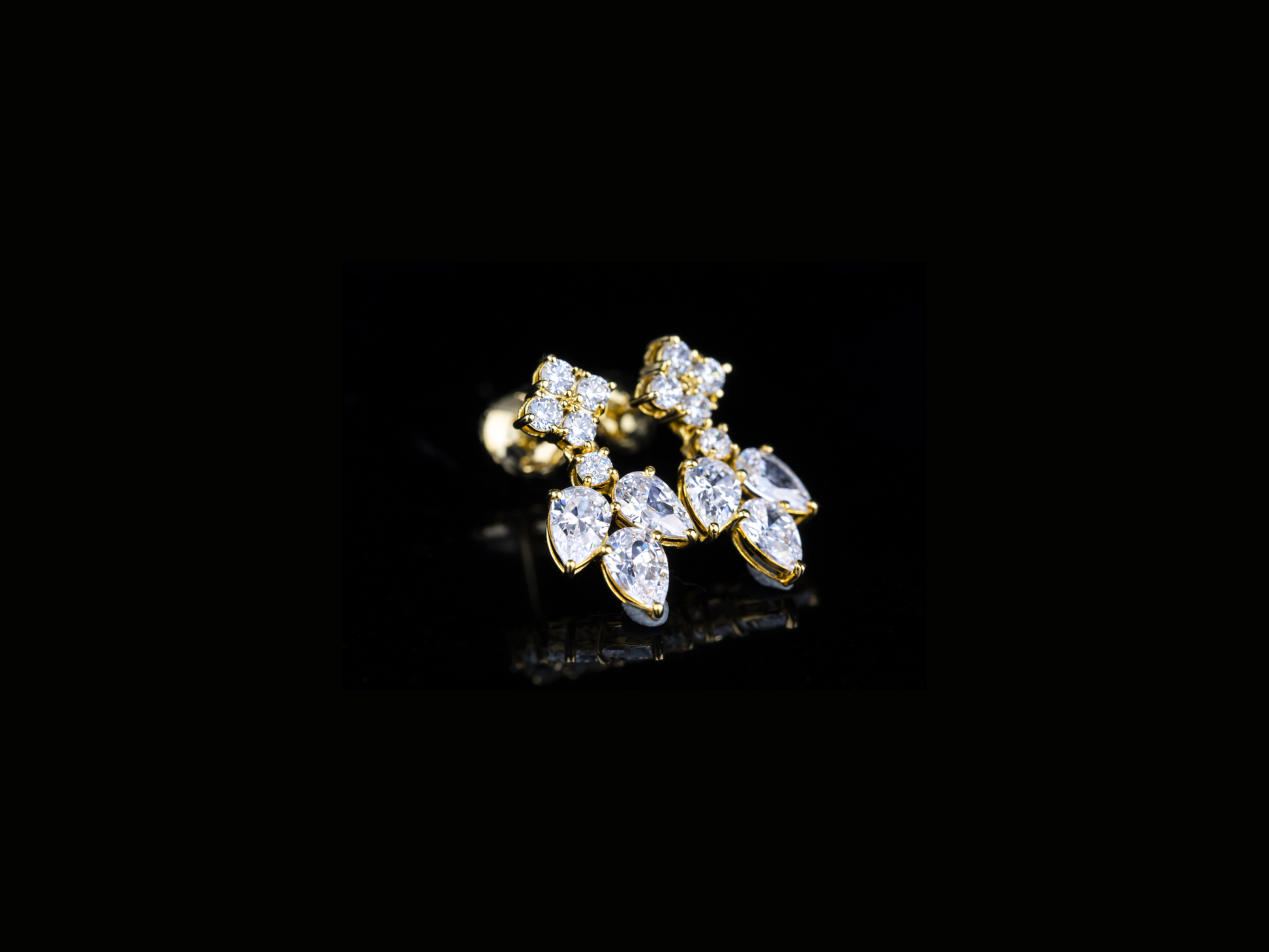 Luxury Diamond Floral Drop Stud Earrings | 18K, 14K, 10K Gold & Silver