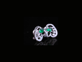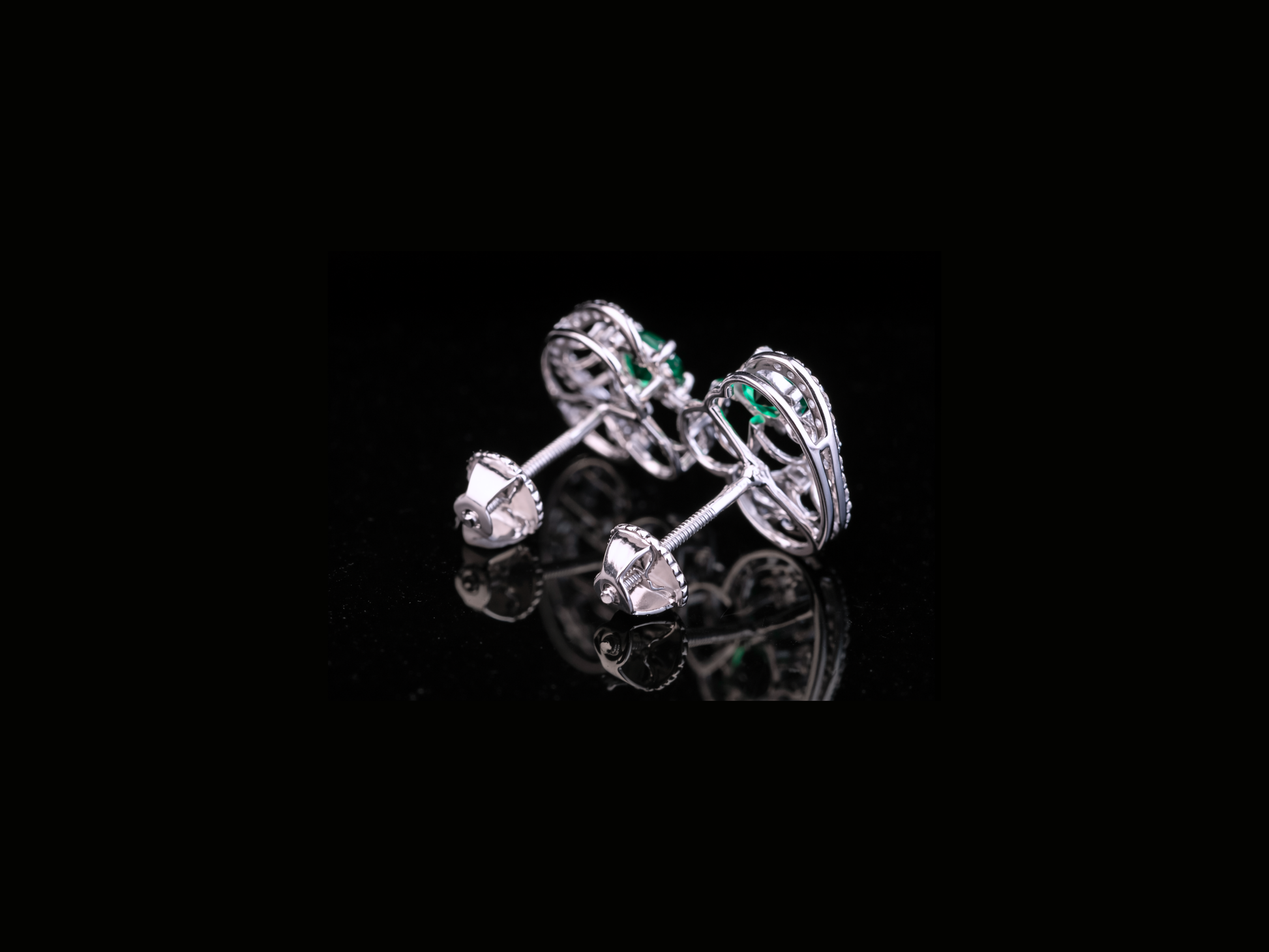 Green gemstone diamond earrings are highly searched in the USA, Canada, and UK, symbolizing wealth, elegance, and sophistication. The curved halo setting enhances brilliance while the emerald-green centerpiece creates a bold contrast that stands out beautifully for both everyday wear and special occasions.
