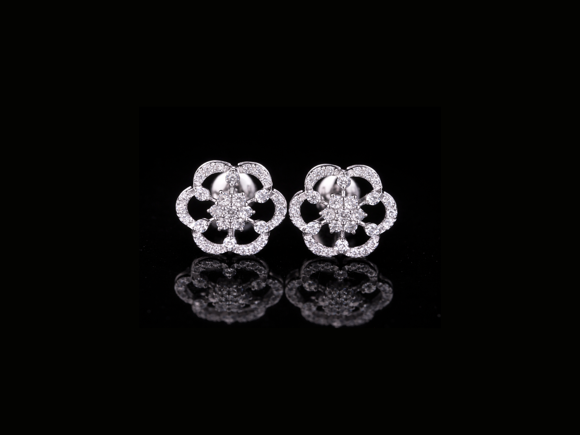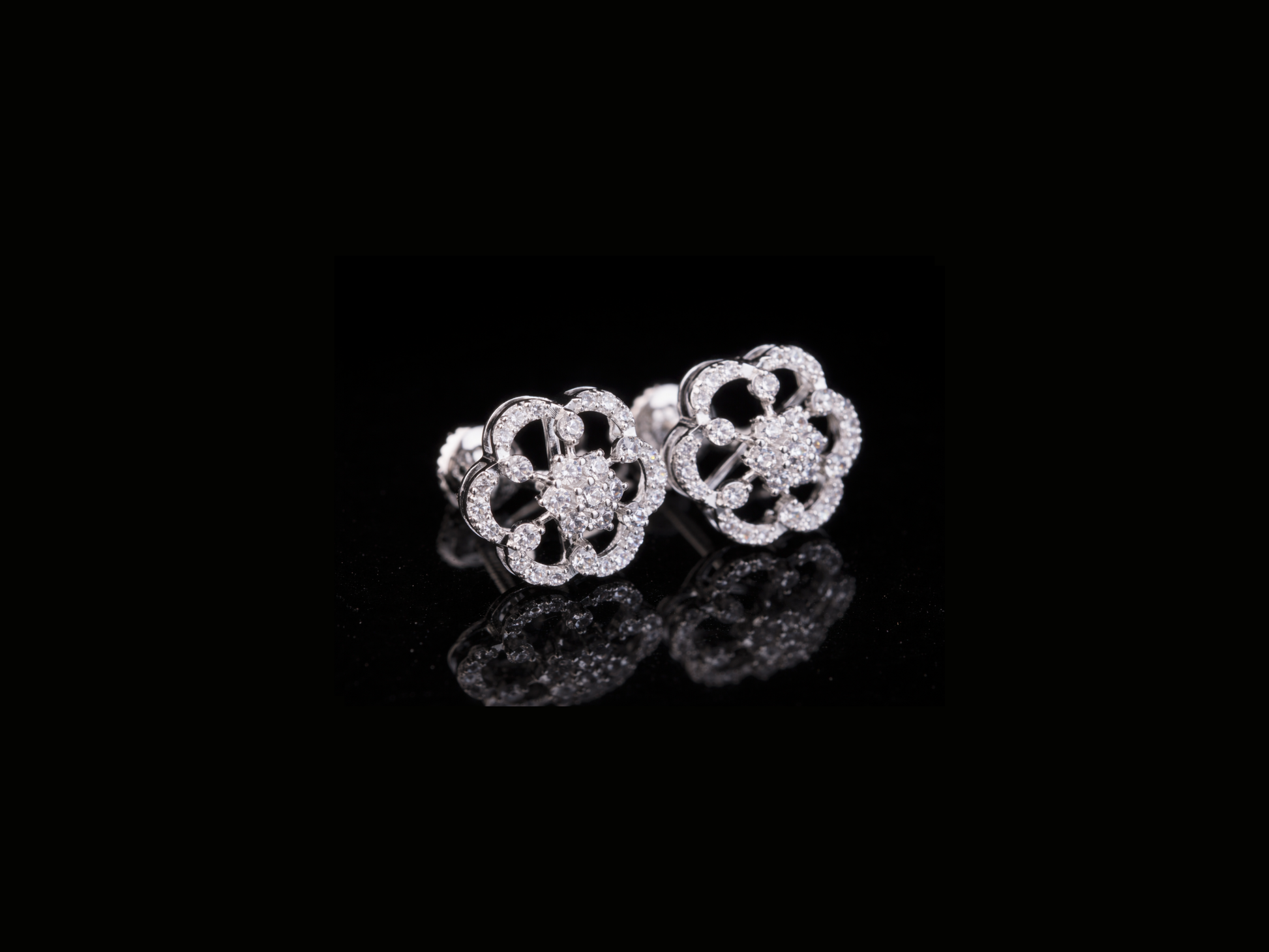 • Floral diamond stud earrings