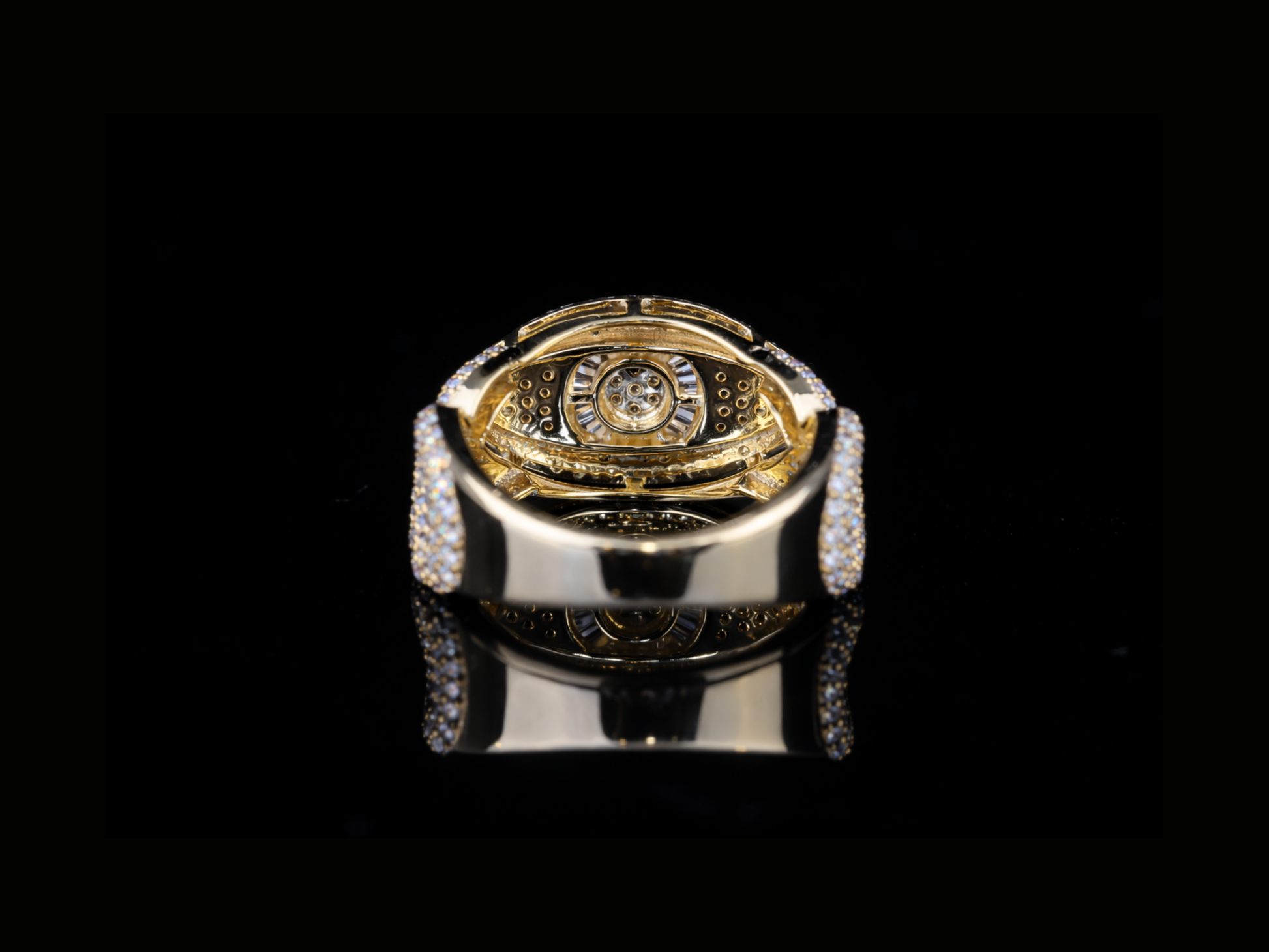 Turn heads with this luxury evil eye diamond ring, a powerful symbol of protection blended with high-end designer craftsmanship. Featuring a bold oval evil-eye motif encrusted with brilliant pavé diamonds and a radiant center stone, this ring delivers exceptional sparkle and statement appeal.