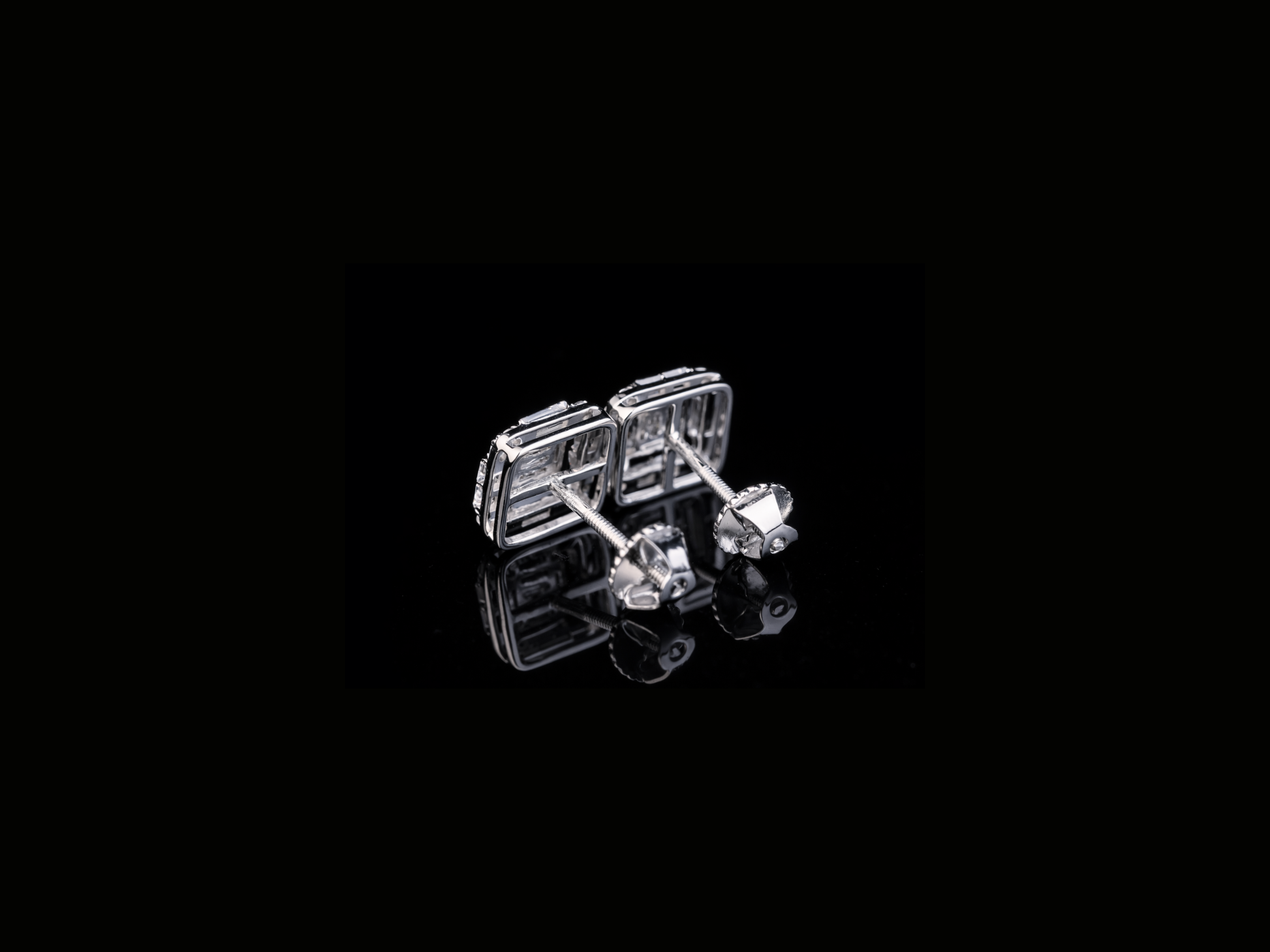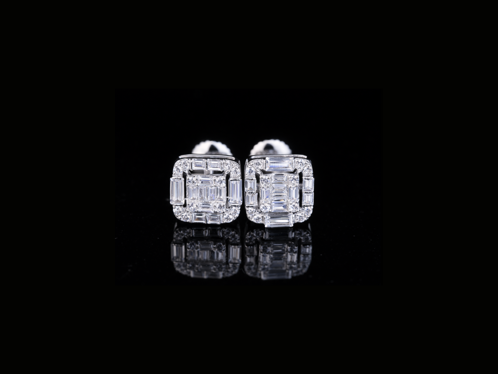 Square Baguette Diamond Stud Earrings | Luxury Gold & Silver Diamond Studs