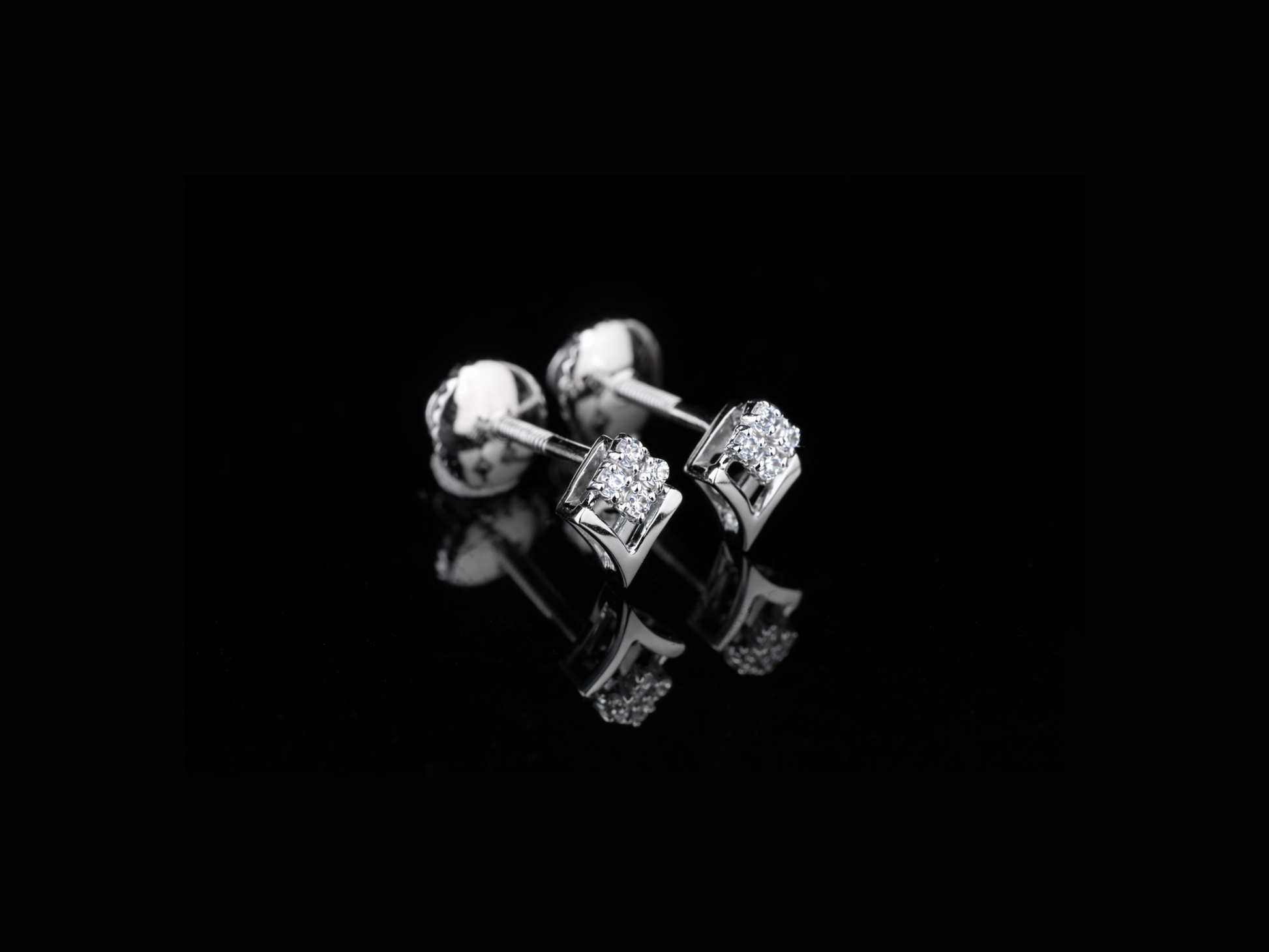 Square Diamond Stud Earrings | Minimal Gold & Silver Diamond Studs