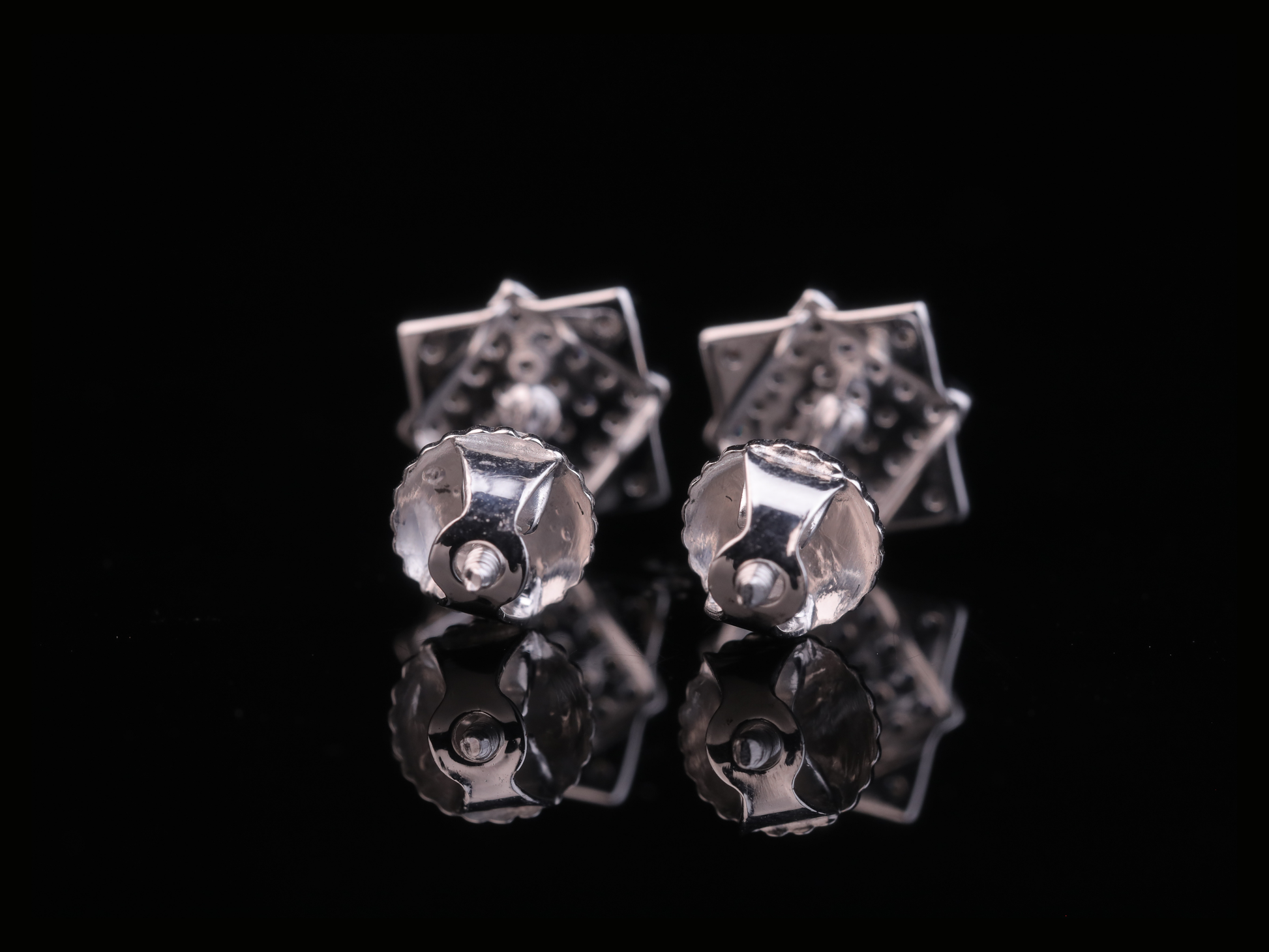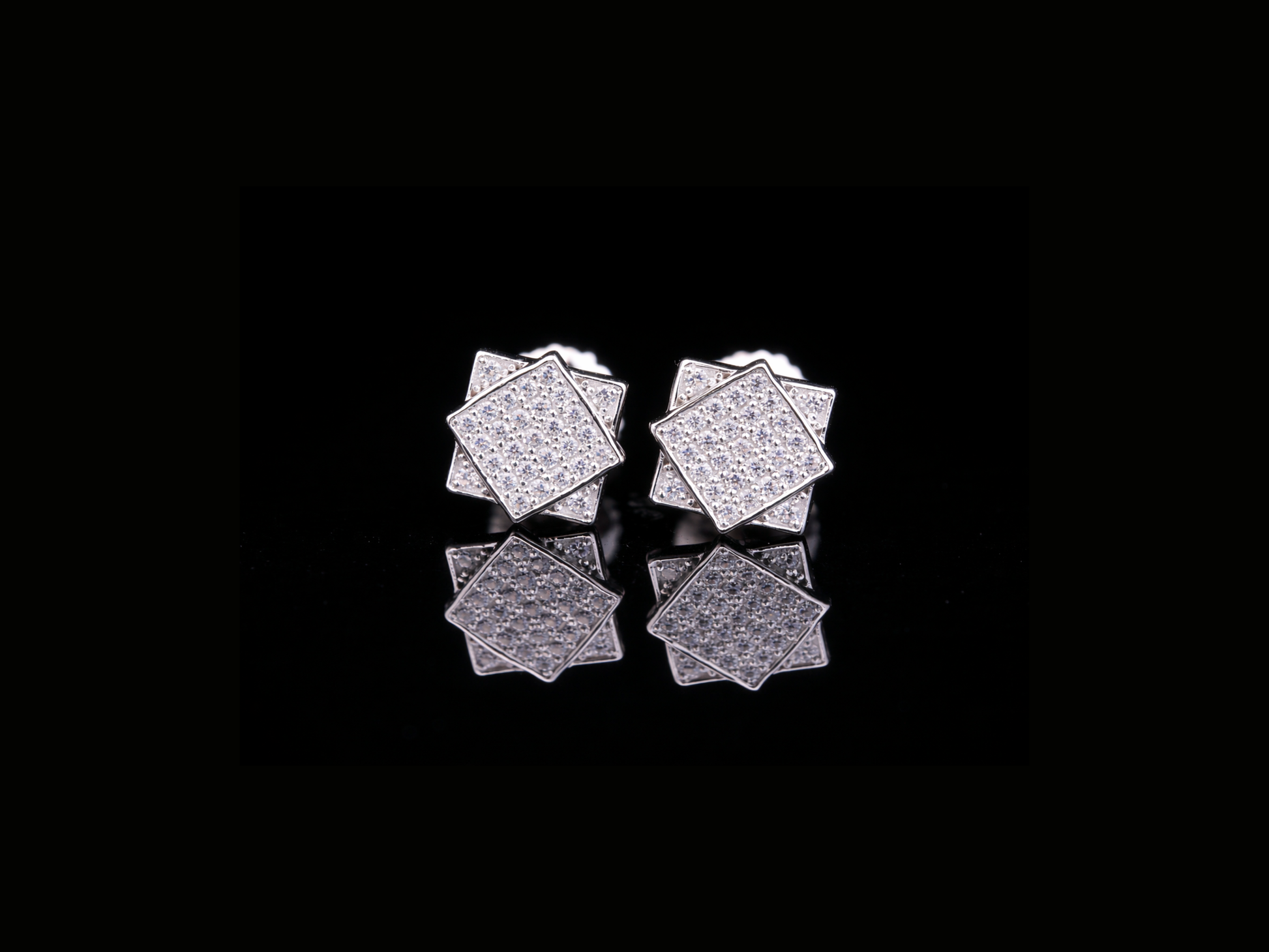 Geometric Square Pavé Diamond Stud Earrings | 18K, 14K, 10K Gold & Silver